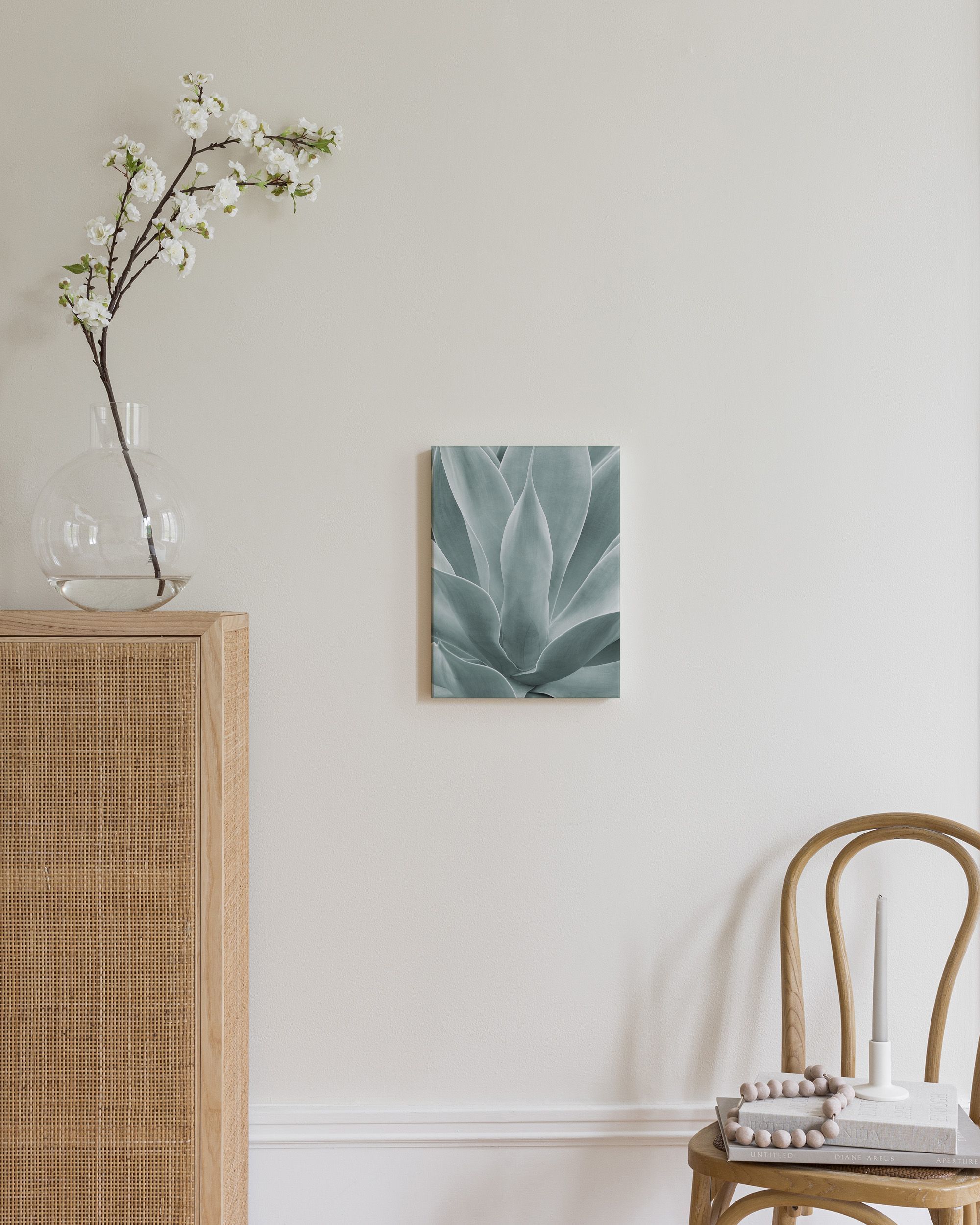 Découvrez la beauté naturelle de cette plante aux feuilles épaisses et pointues dans des tons verts doux avec une touche de gris.